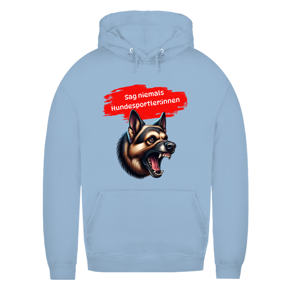 Damen Hoodie – Sag niemals Hundesportler:innen! Mit Deutschem Schäferhund