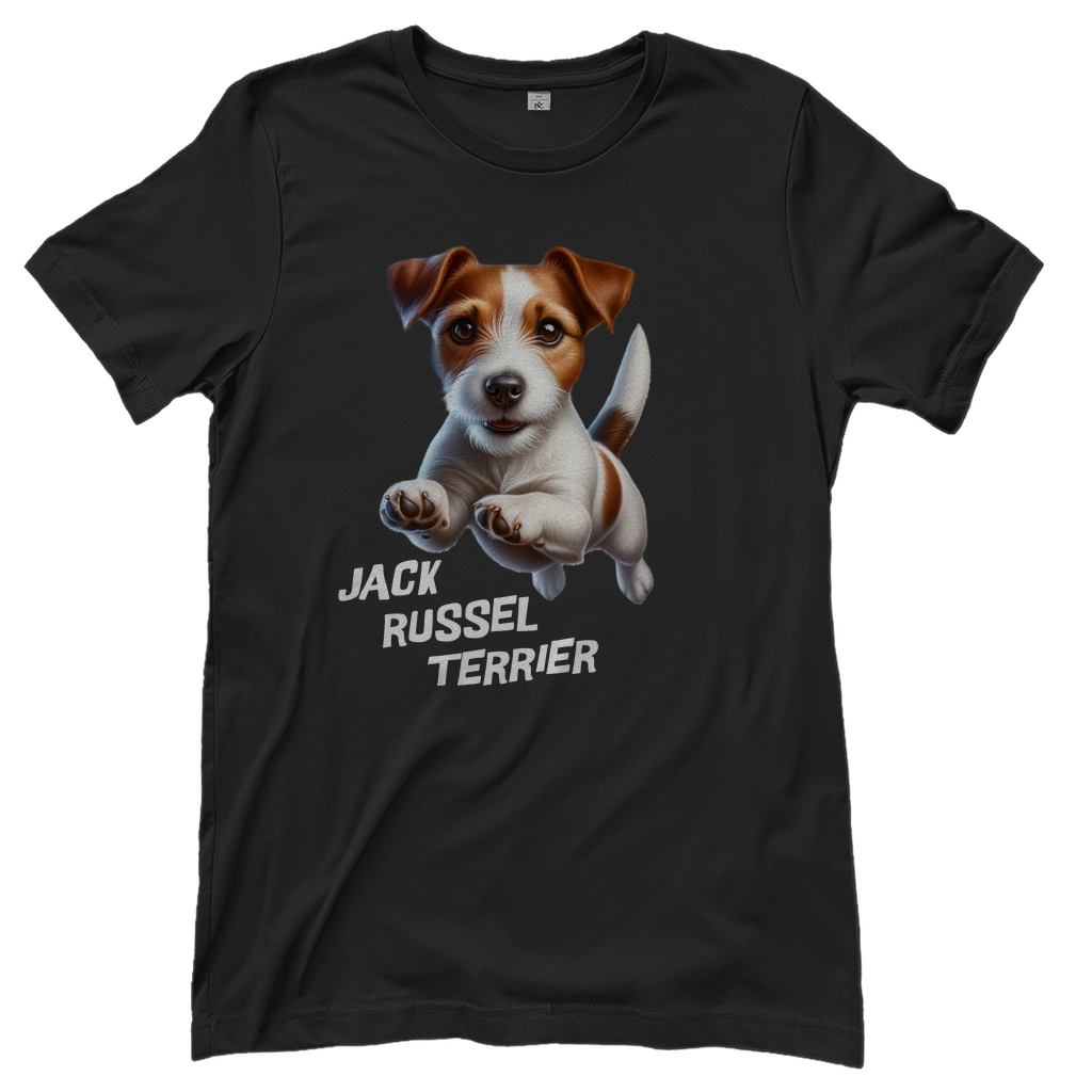 Du liebst Jack Russell Terrier? Dann wird dieses Shirt dein neues Lieblingsteil! Mit seinem dynamischen Print eines springenden Jack Russell Terriers fängt es perfekt die unbändige Lebensfreude, Verspieltheit und Energie dieser wunderbaren Rasse ein. Der hochwertige Aufdruck mit dem Rassenamen macht es zu einem echten Statement für alle, die ihr Herz an diese quirligen Vierbeiner verloren haben.