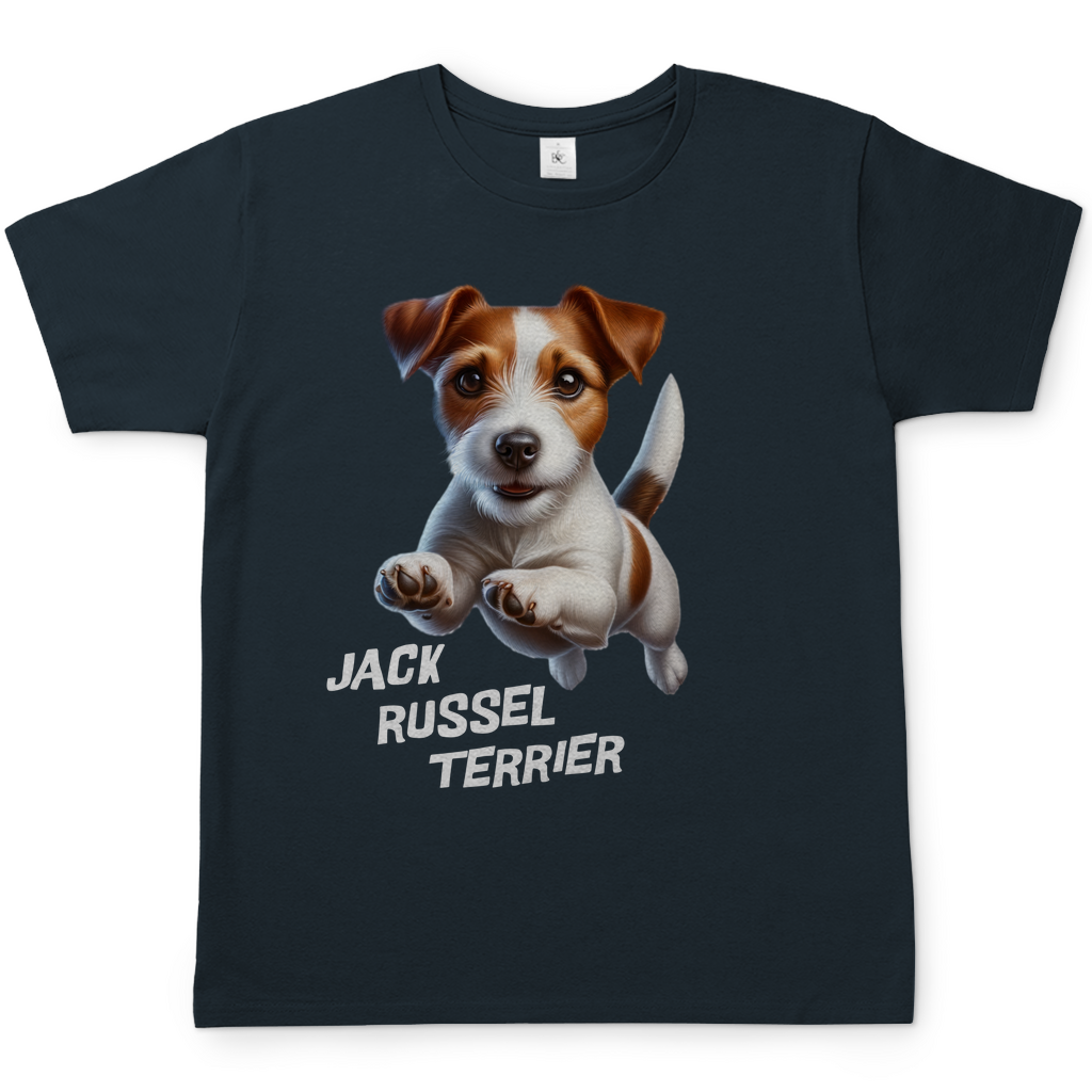 Für echte Jack Russell-Fans: Dieses Shirt bringt die unbändige Energie und Lebensfreude dieser außergewöhnlichen Rasse perfekt auf den Punkt! Der dynamische Print eines springenden Jack Russell Terriers, kombiniert mit dem Rassenamen, macht dieses Shirt zu einem klaren Statement für alle, die den kleinen Wirbelwind im Herzen (und vielleicht auch an der Leine) tragen.